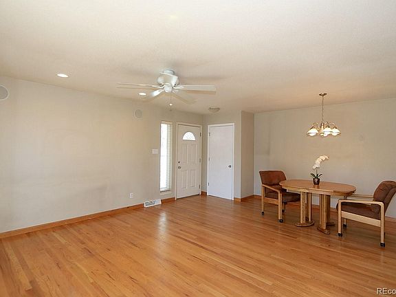 One of a kind, rare ranch style end unit. Everything on the main floor with the bonus basement for activities and play! Beautiful real hardwood floors, wired for sound throughout, large exterior low maintenance deck with automatic awning. Enjoy a casual meal or visit in the eating space off the kitchen or a more formal visit or meal in the dining area joining the living room. Enter through your private courtyard. The sun flows in the newer windows and sliding doors. The cozy kitchen has lovely granite countertops, white appliances (double ovens), pantry and loads of cabinets. The Streets of Southglenn are located within a five minute walk, enjoy the shops, movies, restaurants and free outdoor concerts during the summer. The basement offers lots of storage space and a bar with mini fridge. Glenn Oaks Townhomes offers a great swimming pool and club house for any sort of entertainment event.
