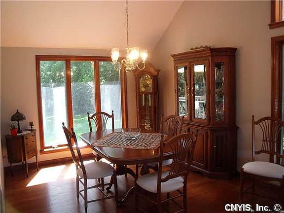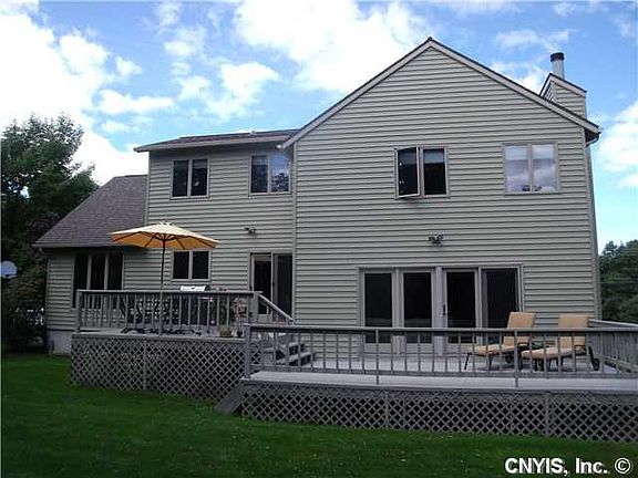 House is in J-D School District, Town of Pompey, and Manlius mailing Address. ** Lovely-Move in Condition!! Newer, 4 year old, hardwoods in livingroom and diningroom. Vaulted ceilings. Cherry, eat-in-kitchen, newer Stainless steel appliances: open to fireplaced familyroom--wall of glass to oversized deck and private backyard. Office or first floor bedroom with adjoining half bath that was designed to be full bath. Upstairs has 3 bedrooms, plus a super-sized additional familyroom with 2 skylights and vaulted ceiling. Country yet close to everything. In 2005 new roof, siding, windows.