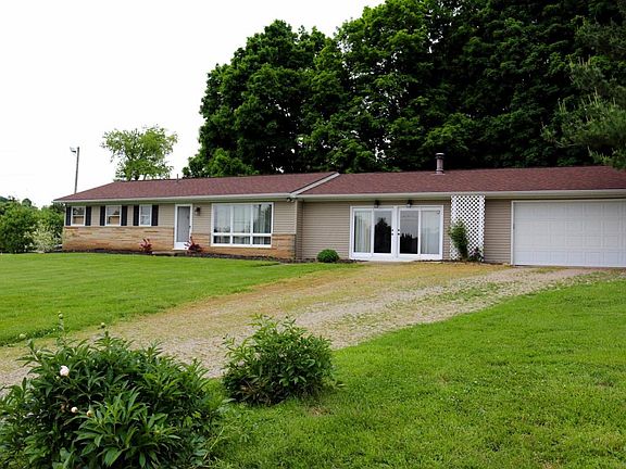 Unsurpassed Beauty on this Natural 7.73 Acre Retreat! Property presents Wooded Trails for Horseback Riding, 4-wheeling or Hunting, and Gorgeous rolling pastures with wide open space for Privacy! This classic 3 bed 2 bath ranch home offers 1868 sq ft with an open concept Kitchen and Dining Room, Large Family Room with wood burning center fireplace, and first floor Laundry. The Enormous full basement is ready to finish with plenty of room for storage and an additional laundry area. Let's not forget the 3-Car Attached Garage with a New Garage Door and new Opener w/Keypad. Horse Lover's dream! 4-stall, cement floor Barn offering electricity and water, additional garage space, and room for Chickens! Make a Visit to this tranquil oasis in the Country, and take a moment to Enjoy the View!!!