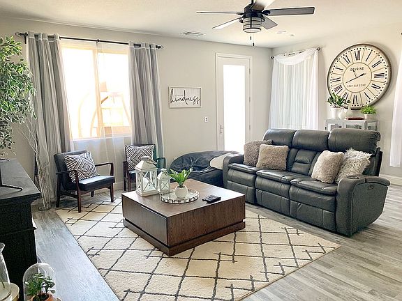 Move-in ready home in the new Century Homes Community with 3 bedrooms, 2 bathrooms, family room, and dining. Near Boris Elementary School The kitchen has generous counter space, lots of cabinets, and a walk-in pantry. New stainless steel appliances. Recently upgraded floors with faux-wood luxury vinyl. Enjoy the backyard garden with globe string lights. Plenty of poured concrete to entertain your family and friends. Includes a free-standing gazebo and a birdcage gazebo with bistro set. Finished oversized garage with a pass-through door and it is set up for the perfect man cave. Paid solar included. ($24,900) 15 panels 5.0 kWp Ring doorbell and floodcam installed. Construction completed in January 2018. .