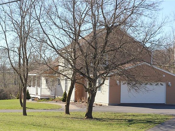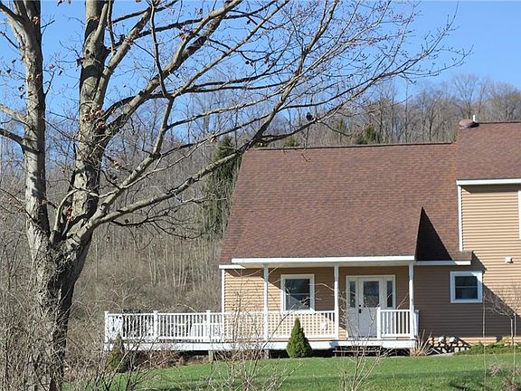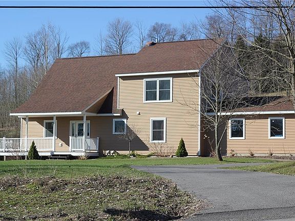 Stunning contemporary passive solar home with open floor plan, beautiful hardwood floors. Custom granite kitchen. Dining area with gliding doors to deck-perfect for summer BBQ's. LR with gas FP, and two 1st floor BR's and bath. Light and spacious. Large Master Suite with whirlpool tub and walk-in shower, organizer walk-in closet. Family room, 4th BR, laundry, workout, and utility rooms in full walk-out basement. 1.4 acre lot, 2 car attached garage, paved circular drive. Energy Star rated heating, cooling and appliances included for low utility bills. Cable available. Country setting near Colgate University.