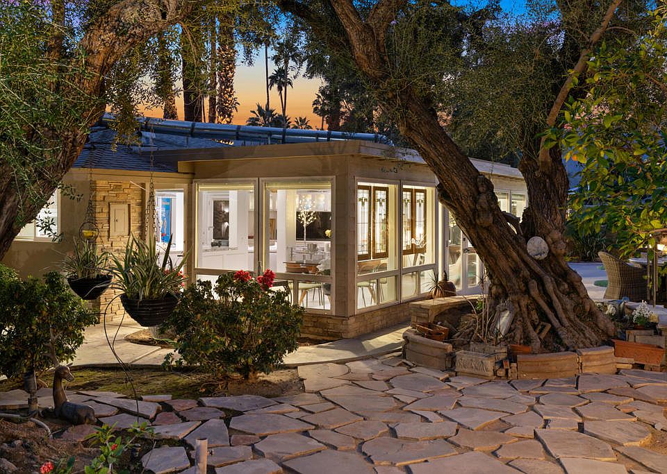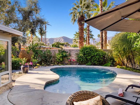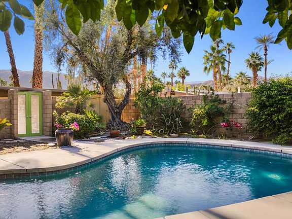 Oozing charm, character and comfort with an interesting architectural provenance, is this updated Mid-Century Modern home with 2 bedrooms & 2 baths nestled in a park-like setting on 3 parcels of fee simple land (land you own) with mature landscaping in a coveted location near central Rancho Mirage. Quiet and private, yet adjacent to shopping, restaurants and entertainment. Features of this home include: chef's kitchen with Viking stainless steel appliances, granite slab countertops, double pane windows, custom cabinetry throughout with plenty of storage, private saltwater pool, and gazebo all in a serene setting surrounded by mature landscaping and citrus. Within the last year Sellers spent over $140,000 on renovations and upgrades including: new 5-ton air-conditioning, new ductwork, primary bathroom renovated down to studs and rebuilt, electric car charging station, new vent hood in kitchen (full list of renovations made by Sellers included in documents). Tierra Del Sol is a friendly and discreet community of 39 well-kept and comfortable Mid-Century Modern homes originally designed and built alongside the fairway homes of the Thunderbird and Tamarisk country clubs as less expensive alternatives and were designed by architect Richard R. Leitch. Tierra del Sol has an incredibly low HOA fee of $280/quarter and includes a community pool and changing rooms.