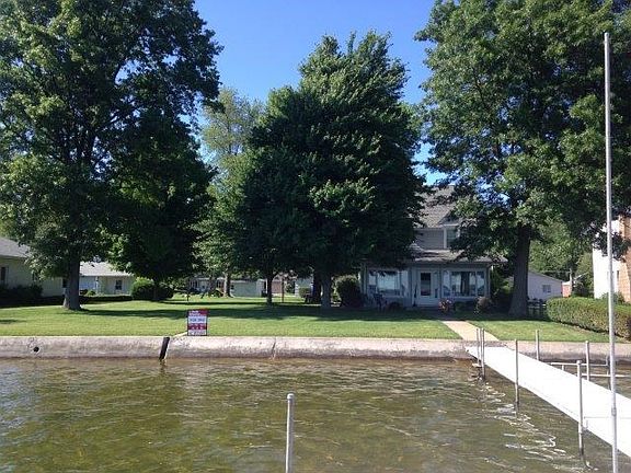 Wawasee Lakefront 100'+ frontage on the wonderful north shore Eli Lilly Rd area, with great sand beach, cool breezes and wonderful lake view consisting of 2-50' lots; one with updated 6bdrm, 21/2 bath home and the other an adjoining vacant lot plus an additional 50' lot across road for additional parking or garage /storage/guesthouse. Enjoy the nicely remodeled home with quality Ayr cabinetry, 2 living areas, fireplace, plus enclosed lakefront porch, and 3 of the bedrooms opening onto covered balcony and overlooking side lot to enjoy or build on. Great property for spacious family enjoyment and convenient to town. Come, dock your boat at the pier & start making great family lake memories! Most furnishings can remain if desired.