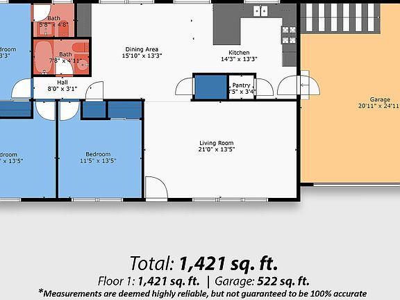 - Total interior livable area: 1,421 sqft
