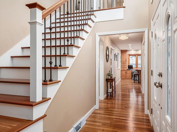 Welcome to this beautifully updated home in Westerville Schools on a 1 acre lot. Inside you will find a gorgeous kitchen with large center island and a remodeled living room featuring a fireplace with Valor gas insert. Upstairs the oversized primary suite features a private bath, walk-in closet and balcony overlooking the yard. There are hardwood floors throughout the entire home, no rooms with carpet! Outside you will find a screened in porch, extended paver patio with pergola, fenced yard and a paved driveway leading to the 24X30 pole barn w/concrete floor and electric. Huge finished basement, whole house generator and EV car charger in garage. Located close to highways, shopping and restaurants. Over $150,000 in updates in the last 5 years!