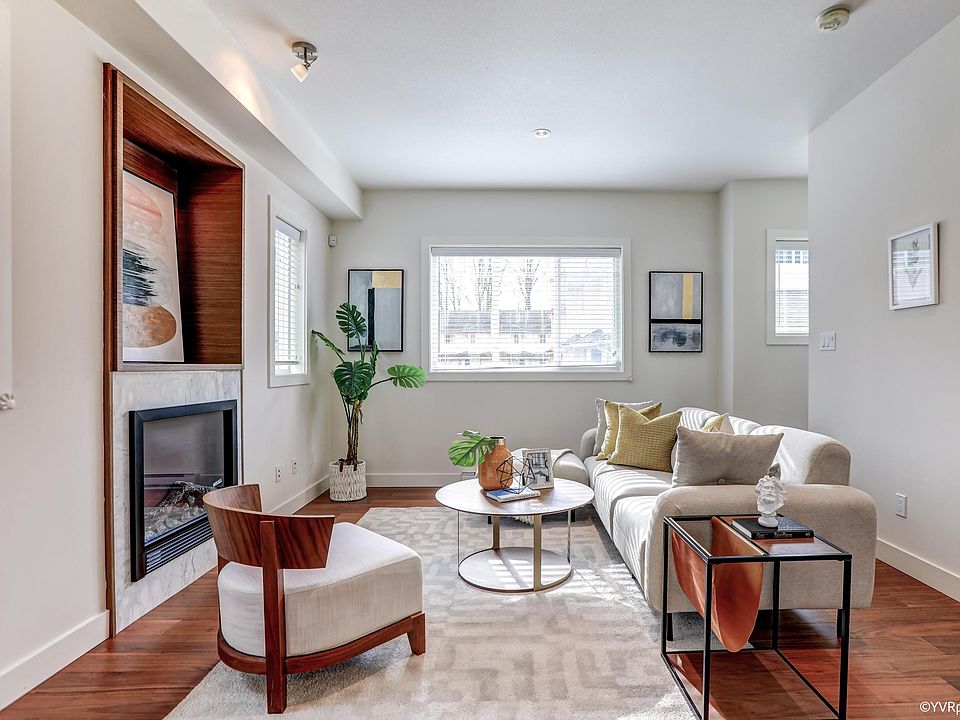 Rare CORNER unit w/ a Lucky No. 8! South facing exlusive yard! 10 unit only boutique complex. You will enjoy living in " the Centre" of Richmond, yet far from noise of city life/flights. Short stroll to everything" TOP schools - Richmond High, famous Ferris Elementary, Richmond Center, Skytrain, Parks. Only 6 years old, lightly lived + lovingly cared for sweet home. New paint + new engineered hardwood flr on top level. Spacious living room, fireplace, dining area + a good sized balcony for recreation/hot pot! Bright kitchen w/big island, S/S brand name appliances. Full size washer/dryer. Upstairs features 3 decent sized bedrooms + 2 baths. The big den on the 1st level can be 4th bdrm/office. Bonus:SxS garage. Sneak Peak Fri.18th,4:30-5:30pm by app. Open: Sun Feb 20, 1-4pm. Must see!