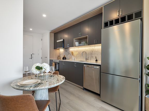 Floor-to-ceiling windowsStainless steel appliancesQuartz countertops