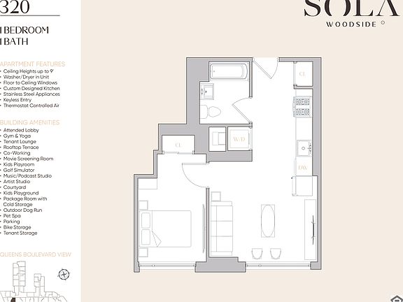One Bedroom One Bathroom Available in Woodside Welcome to SOLA : Where Luxury Meets Comfort Discover modern living at SOLA, where our thoughtfully designed apartments offer a seamless blend of style and functionality. From cozy studios to spacious three-bedroom residences, SOLA has a home to suit various lifestyles, and we also offer fully furnished apartments! Our units features: Quartz countertops Stainless steel appliances Dishwasher Floor-to-ceiling windows Washer/Dryer in unit Our Building features: Elevator Storage Cages Bike Storage Package Room Dog Park Attended Lobby Butterfly MX Music Room Childrens Playroom: Screening Room Fitness Center Discover Woodside, Queens: Your Gateway to Vibrant Urban Living Experience the best of New York City living in the charming neighborhood of Woodside, Queens. Nestled in the heart of the borough, Woodside offers a unique blend of rich cultural heritage, varied dining options, and convenient city access. Images & tours are for illustrative purposes and may not reflect the exact unit Equal Housing disclaimer and SOLA is a registered service mark of Sola Rentals QOZB LLC, and is used with permission *At lease signing, upfront move-in costs include a security deposit equal to up to one month's rent, an application and credit report fee of $20 per applicant, a guarantor application and credit report fee of $20 per guarantor application (if applicable), and a third-party guarantor policy fee as charged by the third party (if applicable). Additional fees include monthly electric utilities as charged by a third-party meter company, WIFI as charged by a third party, and furniture rental ranging from $75 to $200 per month depending on the furnishings. Third-party furniture rental or purchases are charged as per the third party. Storage units range from $125 to $200 per month based on size, and bike storage is $20 per month. There is a $75 per month per person amenity fee. Private events in amenity areas cost $250 to $1,000 per hour per space. A refundable pet fee of $250 per pet is required. Key replacement costs $50 per key for lost or damaged keys. A late fee of $50.00 or 5% of rent, whichever is less, applies. Lockout fees range from $40 to $80 based on the time of day. A check bounce incurs a $50 fee. The pet wash machine costs $10 per 15 minutes. Laundry in the cellar is $3 per wash cycle and $2.75 per dry cycle. Legal fees are applied as permitted by law and the lease. Credit card transactions currently incur a 3.5% fee per transaction by the third party, subject to change without notice. Any damages caused by the tenant or tenant's guest beyond normal wear and tear are billed accordingly. Additional fees may apply, such as but not limited to amenities, pet fees, application fees etc.