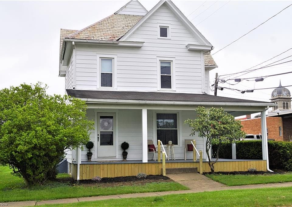 IMMEDIATE POSSESSION! This spacious home offers 3 to 4 bedrooms and 2 full bathrooms. Gorgeous original woodwork throughout the home with 3 beautiful sets of pocket doors. Stunning original wood staircase. Large eat-in kitchen with appliances, dining room could be first floor bedroom if needed, living room with fireplace (decorative only), front familyroom/parlor and first floor laundry and full bath. Upstairs youll find 3 bedrooms, full bath, and small office/library area. Freshly painted interior, glass block windows in basement, front porch and front railing all new in the last month. Large area in the back has room enough to build a garage! Close walk to school, church, library, grocery stores, and restaurants. Very charming and well maintained.