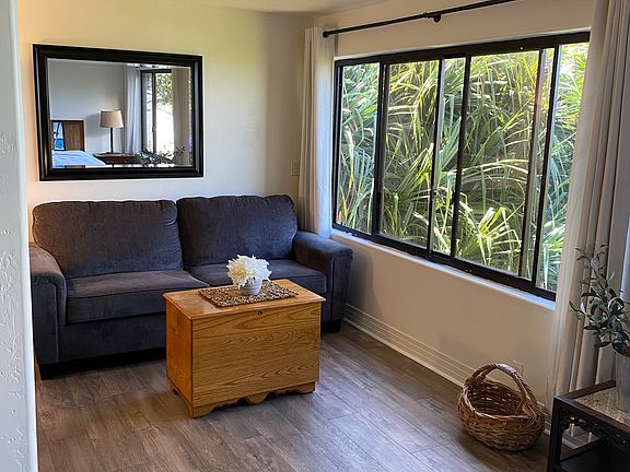 Furnished peaceful studio with ocean view. Close to airport, resorts and 9 miles from down town. Higher elevation with much cooler temperatures. Perfect for one occupant. Owner lives upstairs. Disclosure: This is coqui area. They are out at night after a heavy rain. Lease is month to month. With 30 day notice if need to vacate. First month rent plus security deposit is due upon moving in. Utilities included. Water, electricity and WiFi/internet. Shared washer dryer in carport. No pets or smoking. Parking in carport. Same level as the studio.