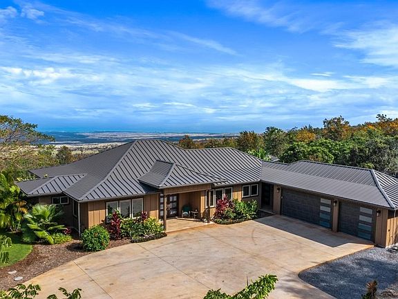 This NEWER Hawaiian Plantation style home is blended with a modern twist, embracing the indoor/outdoor living Dream, merging the Old Hawaiian style with new modern conveniences. Surrounded by over 3 acres, this estate is the epitome of privacy, and has Panoramic Ocean views, from Kona airport to Maui. Open concept living with Chef's dream gourmet kitchen, and guest quarters separated by a tiled breezeway, w/oversized 3 car garage, and low maintenance yard.<br>*Fleetwood Pocket doors with screens<br>*Engineered hardwood floors/ porcelain tile throughout<br>*Gourmet Kitchen w/Thermador appliances including convection steam oven, and 6 burner gas stove w/large farmhouse sink, oversize fridge<br>*Solid quartz counters, with entertaining Island and 2 pantry's<br>*8ft solid wood and glass panel doors, w/ casement windows<br>*1330sqft of porcelain tiled Lanai<br>*Air conditioning, central in the main house and split systems in the guest suites<br>*Laundry with sink and built in cabinets<br>*Fully fenced with hog-wire fencing and beautiful entrance with gate for privacy<br>*Yard with sprinklers, garden area and Fire pit, Bananas, Mangos, avocados, pineapples, lemon, limes, lilikoi, oranges, grapefruit(with room to plant what ever your heart commands)<br>*Large Primary suite has amazing ocean views, sliders w/walk-in shower and 6ft soaking tub, and large walk-in closet<br>*2 Guest suites each have custom tiled bathrooms, sliders to lanai and side yard (just steps from garden)<br>*3rd guest suite/office has double doors to entrance and tiled bath<br><br>As you enter through the gate of this premier North Kona community, Makalei Estates, suddenly you will realize you are "Home" This small community of mostly 3 acre, Custom Homes and expansive Ocean/Sunset views is the epitome of Kona living The information herein may contain inaccuracies and is provided without warranty or guaranty of any kind. Agents and Buyers must independently verify any info deemed material or important.