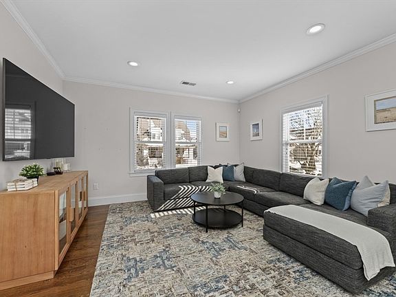 Experience the pinnacle of luxury in West Roxbury’s premier neighborhood. This 3BR/3BA upper duplex w/parking delivers 2,316 SF of curated design—the definitive single-family alternative. A private covered porch & entry lead to a sprawling open-concept main level anchored by a sun-drenched living room & a culinary kitchen w/bespoke cabinetry, gas cooking & premium quartz counters. An expansive center island breakfast bar w/designer pendant lights serves as the home's heart. An elegant dining room w/French door slider opens to a private deck for seamless indoor-outdoor living. The main level features a king-sized BR w/ensuite bath, plus a 2nd sophisticated BR w/direct access to guest bath, laundry & a dedicated home office. Upstairs, the breathtaking Primary Sanctuary offers a king lounge, fitness studio, playroom, 2nd office & abundant storage. The spa-bath features a double vanity & custom-tiled shower. Enjoy a fenced yard, pet-friendly living, Central A/C, tall ceilings & hardwoods.