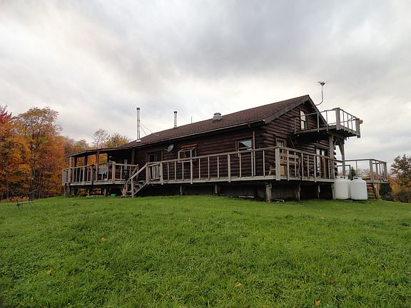 I the Owner would negotiate with a Realtor a selling percent of 3.25% if so desired by the buyer. Private controlled access, Main home log cabin is built on a hill in the middle of an apple orchard, 37.68 acres has 3 bedrooms, first level is 1400 sq feet, basement is 12 block high self draining, woodfired boiler, lp boiler, Toyo lazer heater upstairs, 200 amp panel w/gen-tran back ups panel,and 100 amp at one family home, two services, Thhn wire is all in steel conduit. Polebarn has 11' height ceiling is steel, concrete floor has drain,power,insulated and hot and cold water both upstairs and down, w/10'x16' insulated door, upstairs polebarn is finished as well as downstairs and ready to move in, wood stove and 2 lp heaters, property comes w/ 60hp diesel 4wd tractor, has allied loader, giant snow blower attachment, and brush hog included. Outback in woods is a basecamp, sleeps four and also a underground bunker, or fallout shelter built by Linedecker construction. Property has been cut and blazed w/blueprints of boarders, 37.68 acres, creek,pond. trails galore, there is also a one family home on the property, w/new metal roof as well as the log cabin has new roof. 315 387 3977 to view property. Trash pick up is Monday morning, and is paid throu your taxes. The Estimate price from Zillow does not include 4WD Diesel Tractor, implements, polebarn, sheds, one family home,basecamp,hot tub,Standing Timber, or underground shelter..all of which are included in the sale. Located 30 minutes from Watertown, and 50 minutes from Syracuse, 20 minutes to Lake Ontario and six minutes from Redfield Res. 30 mintes on back roads to Oneida Lake and one hour to Canada Border...Update the Beaver are building another hut on the property, there is also a "Wet Lands Clause", you can except it from DEC or pay higher assessment if you the buyer refuses.