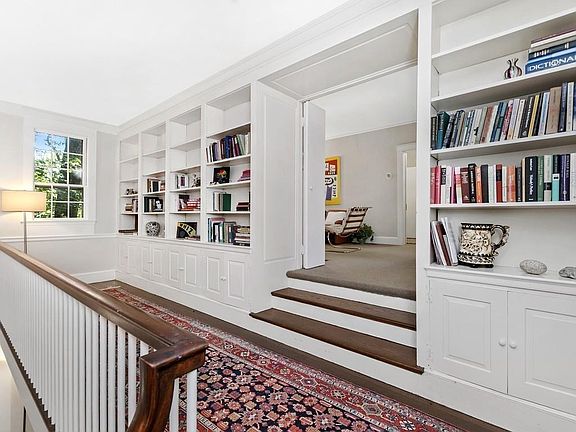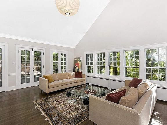Tranquility abounds in this beautiful turn-of the century Waban home, which integrates original architecture with mid-century sensibility. Sited beautifully into the landscape on a private way, the majority of rooms overlook private lush grounds. The main floor features three bedrooms with built-in storage and fireplaced family room that leads to a dramatic library loft. A magnificent grand living room opens to a brick patio ideal for family living and entertaining. The lower level open flow includes a formal dining room and den that connect to the large kitchen that was thoughtfully renovated with plenty of cabinets and counter space for the avid cook. The top floor master suite and it's tree top views are filled with natural light with a gracious sized vaulted ceiling office. There is a one-car garage with additional outdoor parking. This home is located within a short distance to Waban Square, the new Angier School the "T" and routes 90 & 95. Don't miss this warm and unique home!