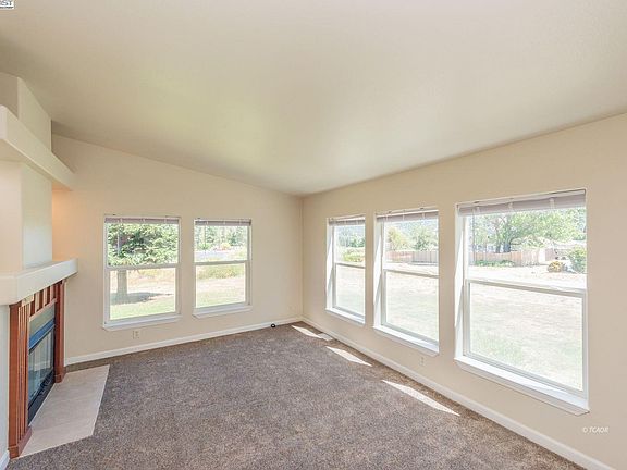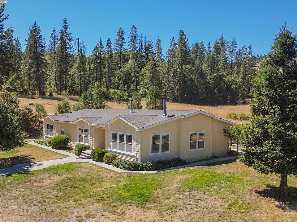This beautifully maintained 2,706 sq. ft. home offers room to spread out with 3 Bd, 2 Bt, and a full office with its own private entrance. Step inside to find brand-new flooring and fresh carpet throughout, plus the entire interior has been freshly painted for a move-in ready feel. The primary suite features vaulted ceilings, a huge walk-in closet, a slider to the back deck, and an en-suite with tile counters. The Family room also opens to the deck and showcases a coffered ceiling, while the office offers flexibility for working from home or hosting guests. The formal living room offers a doubled sided fireplace into the formal dining room. The kitchen has a wall of windows, brand new oven/range, refrigerator, a bright skylight and great walk-in pantry. Kitchen & bathrooms feature tile counters, and the home is equipped with all-electric heating and cooling, including a heat pump for year-round comfort. Outside, enjoy lush landscaping, end-of-the-road privacy, and sweeping views of the Trinity Alps-the perfect blend of seclusion and scenery. This property combines space, comfort, and natural beauty in one remarkable package. The adjoining .73 acre parcel is available, w/ water, sewer.