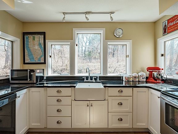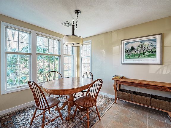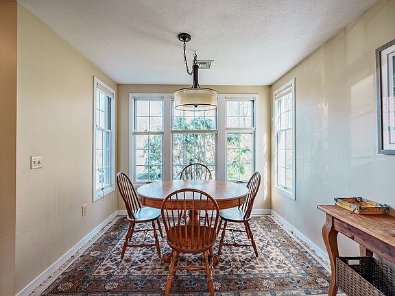 Set in a back corner of this desirable complex, this townhouse offers peaceful views of the surrounding woods. The dining area with ample windows opens to the kitchen, completely renovated w/ soft-close cabinetry, pull-out drawers, stainless steel appliances, & granite countertops. From the kitchen or hallway step down into the sweet living room, with Pergo floors & a wood-burning fireplace. Head outside through the doors to the private patio and relax with the sounds of surrounding nature. The renovated 1st floor half-bath has lovely marble floors and a pedestal sink. On the 2nd level, two generous bedrooms and a renovated full bath w/ tub & shower, plus a laundry closet w/ good shelf space for storage. The large room on the 3rd floor offers flexible use, and has a skylight plus ensuite bath with shower. Parking is convenient in the garage just steps from the condo, and extra storage space above is a nice bonus. No showings until open house 4/6 & 4/7, 10am-noon.