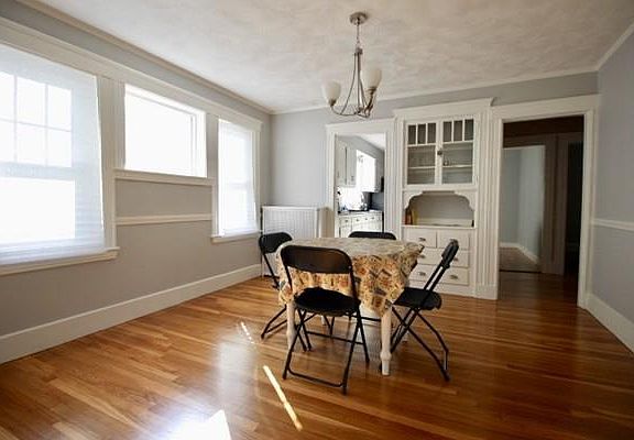 2017 renovation, condo conversion. First floor facing south with great natural light from all around, new hardwood floors, and neutral paint throughout. Awesome East Arlington location in the Arlington Cultural District with easy access to Alewife and Davis Sq, Somerville. 2 bedrooms with an addition at the back that could function as a 3rd bedroom, 1 full bath on the first floor and an additional full bath with standup shower in the partially finished basement. Laundry hookups and extra storage in basement included (Dryer is included or can be removed if tenant wants to bring in their own machine. Washer hookups provide). One garage spot and one driveway parking spot included. Lovely backyard / outdoor space. 3x rent with accepted application (1st month, security, broker fee).