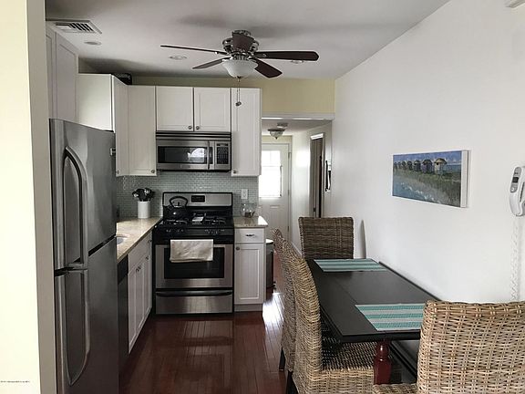 Super charming and affordable Jersey Shore Beach cottage ready for summer! 3 bedrooms and 1 bath raised home with hardwood floors and bay window. Eat in kitchen with s.s. appliances and white cabinets. Huge garage with amazing storage. Peak of the bay off the front deck and perfect back patio, fenced and private for entertaining. Laundry room. Everything new after Sandy. Insurance only 400 a year because raised! Walk to NY Ferry, beaches and restaurants! Hurry, wont last at this amazing price!