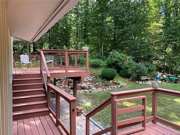 MUST SEE this beautiful 4 bedroom unique 4 level split home located in Eastern Fairfield County on a cul de sac right off route 25 & 84, Merritt Pkwy, I95 & 20min. from NY border! Phenomenal school systems! Renovated currently and through the years this lovely haven is cream colored trimmed in rustic red foundation with new wrap around 2 level connecting deck in matching color! Lush landscape, beautiful gardens, lots of parking and privacy. Spacious rooms with flowing open floor plans. Updated kitchen with island and seating, hardwood floors, living room, dining room with sliders to walkout deck. 4 nicely sized bedrooms, hardwood floors. 2.5 baths, master bedroom with private bath and entrance to outside deck. 4th bedroom off downstairs family room is great for in-law or au-pair. Great location, walk to Wolf Park & Lake. Rt. 25/Main Street shopping, restaurants, urgent care. Move in ready!