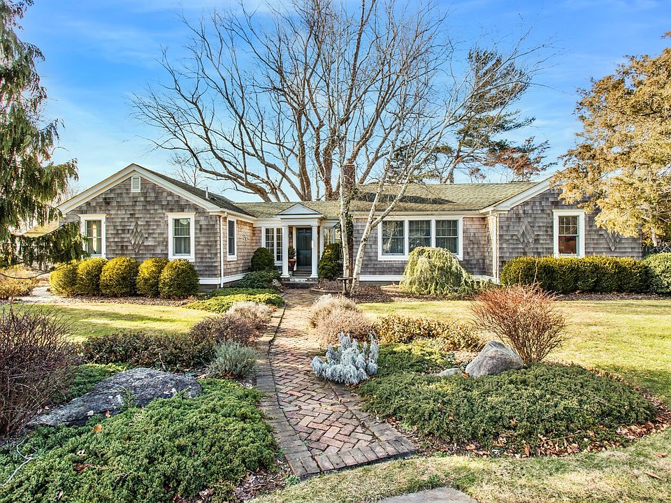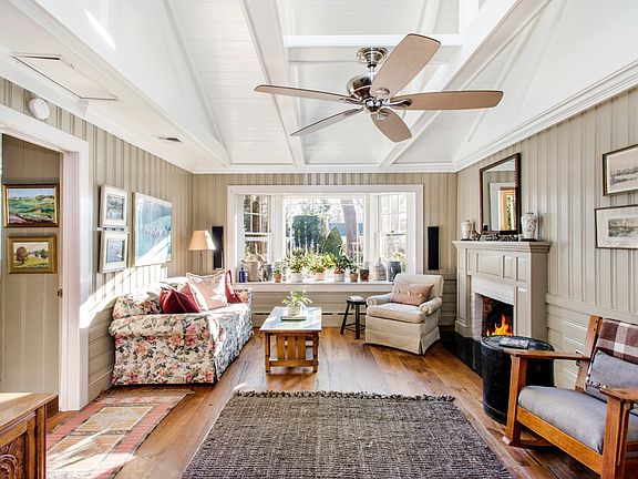 This craftsman style, cedar shingle home, nestled in the heart of Brookhaven Hamlet, is surrounded by lush landscaping and spectacular gardens. A light-filled sitting room with a wood-burning stove welcomes you to this charming home. The house features a spacious living room with a wood burning fireplace, wood paneling throughout and a large bay window overlooking the outdoors. Just off the living room is the primary suite. Light pours into the country-style kitchen with two sinks, a gas range, views of the backyard and easy access to the outdoors. Adjacent to the kitchen is a cozy dining room with coffered ceilings and a wood-burning fireplace and hardwood floors. The home also offers two guest bedrooms, a full bathroom, and a studio with a laundry room. Additional features include CAC, an oversized, 2-car detached garage, currently used as a wood shop with 60 amp service for power tools, Anderson windows throughout, speaker system in most rooms, wireless thermostats, and spectacular perennial gardens with breathtaking colors throughout the spring and summer seasons. This well-maintained home offers plenty of room for a pool.