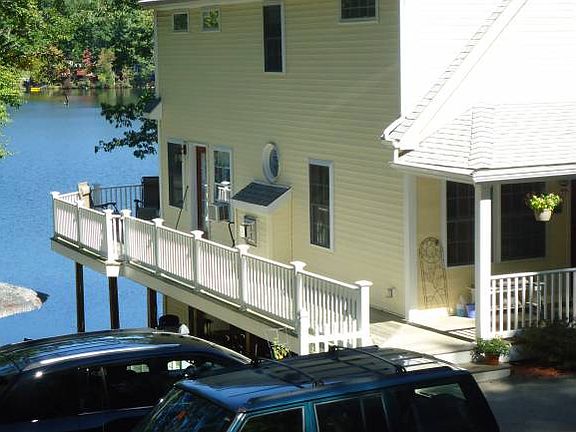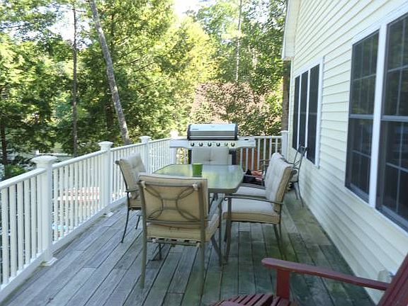 Beautifully sited WATERFRONT home on Clough Pond. Relax on your wrap around deck or living room with views of the pond. This well maintained home features HARDWOOD floors, well appointed kitchen with GRANITE counters, FARMER'S PORCH,gas FIREPLACE and finished WALK OUT basement with potential 3rd bedroom. Backyard features a STONE PATIO with STONE WALKWAY to the water. Great year round or vacation home. Located within minutes of RT 106 and central to both CONCORD & LACONIA. Site assessment completed detailing a THREE BEDROOM SEPTIC DESIGN. This acreage consisits of two lots. .34ac with house and .70 ac across the road.