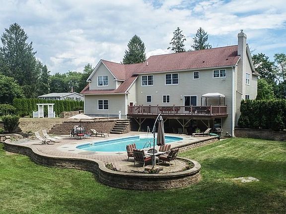 This home has it all! Custom built home with a farmhouse porch, 4-5 bedrooms, 3 renovated bathrooms, Pool, Basketball Court, large private yard, custom 3-car garage with steel i-beam & Epoxy flooring! Hardwood Floors throughout. On the first floor you'll find an open foyer, custom kitchen w/ new SS appliances, large living room, dining room, private office & 1st floor laundry. Upstairs you'll find a large master suite with a walk in closet and master bath with a Jacuzzi tub, down the hall are 3 more bedrooms and a huge bonus room over the garage, plenty of storage space! The lower level walks out to a patio & has a second staircase that leads up through the garage- perfect to finish with an in-law set up or additional living space. The expansive yard is perfect for entertaining- lined with trees for privacy and an oversized 16x30 deck. Minutes to Seekonk & Providence for shopping or an easy commute. No HOA fees or covenants.
