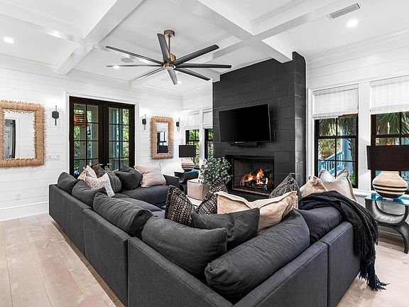 Located in the secluded, gated Bridges district in the coveted community of WaterSound Beach nestled at the end of a quiet street , this stunning home is truly one of a kind! Defined by exquisite design and impeccable construction, this unique property offers luxury finishes masterfully incorporated throughout. On the first level, the welcoming and spacious living area is centered around a gas fireplace and is filled with abundant natural light. Opening from the living area, you'll find a private screened porch ideal for gathering after a day at the beach. Guests can enjoy two junior master suites with tastefully curated ensuite baths plus a charming bunk room with an ensuite bathroom ideal for children to have their own fun space. Ascending to the second level, you're greeted by another spacious living room alongside a dining area appointed with a stylish gas fireplace that reaches up to the vaulted ceilings. An expansive private screened porch seamlessly flows from the living area allowing for an extended gathering space ideal for entertaining. The gourmet kitchen offers a large center island, Viking and Sub-Zero appliances, and a sleek modern design boasting chic gold fixtures accentuated by black cabinetry and white walls. An office, an elevator for added convenience, and a powder room can be found just down the hall from the living area. Stepping into the master retreat, you'll find a cozy space perfect for unwinding and a spa-like ensuite bathroom complete with a walk-in closet and laundry area providing a truly serene retreat. The ensuite bath provides a deep soaking tub, a separate shower, white tiled walls, and soaring ceilings.A two-car garage provides the storage needed for beach chairs and umbrellas, a golf cart, and much more. The thoughtful design of this property makes it well-suited to be a full-time residence or a delightful second home. This home is an absolute must-see to fully appreciate the intricacy and beauty of its design and fine finishes.Located south of Scenic Highway 30A, WaterSound Beach offers the accessibility of easy access to activities all along scenic Hwy 30A. Amenities include luxurious swimming pools, a puttering park, community green spaces, a fitness center, and private boardwalks to one of the most beautiful stretches of The Gulf of Mexico. 2023-06-05