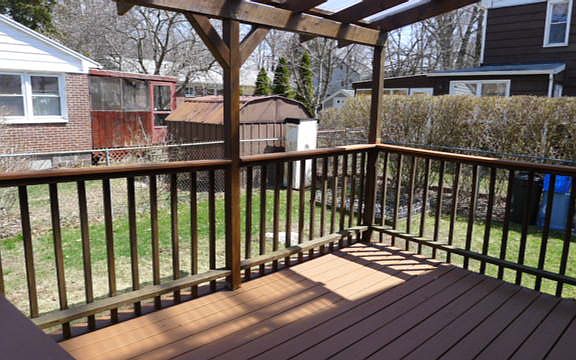 Affordable, adorable, and superbly maintained. This 2-bedroom townhouse has it all. It was thoroughly updated with new eat-in kitchen, bath, laminate flooring, windows, and more. Kitchen with custom made cabinets and marble countertops. Dining room with a slider opening to a beautiful deck. Gas heating and A/C. Nice private yard. Ample off street parking with own driveway for 2 cars.