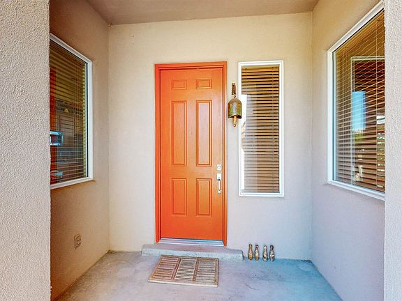 The Mesa Verde model is a single level 3 Bed/2 Bath/Office or 4th Bed home with a popular floor plan. The open living area with its Fireplace and High ceilings features Vigas, large windows and lots of natural light. French doors lead out to the covered portal and walled backyard with views and raised brick/galvanized beds for gardening. The kitchen has a dining nook, upgraded appliances, double oven, small center island, pantry and also a bar-height counter to create a definition of space between the kitchen and living area. The double doors open to the large master suite and bath with a jetted soaking tub, a separate walk-in shower, dual sinks, and large walk-in closet. You can step outside from the master into the backyard to enjoy the skies in the day and stars at night due to the Night Sky ordinance in the community. There are two bedrooms on the other end of the home along with the second full bath and a Bonus Room which can be used as an Office/Gym or 4th Bedroom. The in-floor radiant heat keeps your feet warm in the winter. The laundry room has a newer washer/dryer, extra storage plus a laundry room sink. Boiler replaced 2014, microwave and Refrigerator 2016, water heater 07/2019, washer/dryer 08/2019. Miles of walking trails. Come see why Rancho Viejo is the place to be.