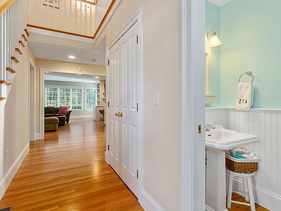 Welcome Home to the perfect property for entertaining your family & friends. Impeccably maintained 3 bedroom, 2.5 bath Cape located on a cul-de-sac in beautiful Captains Village! Convenient first floor living offering custom details throughout including gleaming hardwood floors. Cathedral foyer with powder room opens to a warm & inviting living room with fireplace, built-ins, recessed lighting & a wall of windows for wonderful natural light. Spacious dining room with built-ins & crown molding. Entertainment size cathedral kitchen with custom cabinetry, granite counters, island with breakfast bar, skylights & separate dining area with plenty of windows overlooking the private back yard. If that isn't enough space for your entertaining needs there's an additional 8x7 Butler's pantry with plenty of extra storage & workspace. This space all opens to the cozy family room with fireplace, built-ins & French door to the back deck. First floor master en-suite with access to its own private deck, walk-in closet & full bath featuring double vanity & tile floor. Upstairs you will find 2 very spacious bedrooms & full bath. Extra living space over the garage would make a great home office.