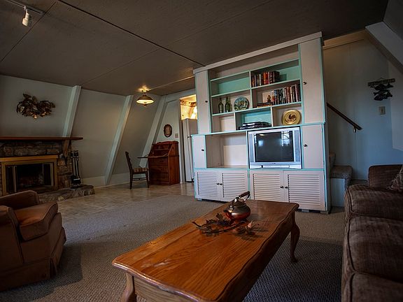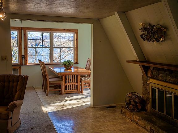 3 story A-frame located in Chalet Village in the town of Lake Santeetlah boasts of a magnificent view of the lake and mountains! Upstairs is the 2 bedroom and 1/2 bath. The main floor has open floor plan with large living/dining area, kitchen and bath. Comfortable furniture surrounds a wood burning fireplace making for a cozy year-round living or an appealing vacation rental. Downstairs has a large storage area with laundry room, maintenance area with room for recreation space! Come to your chalet and enjoy all nature has to offer in this pristine mountain area with a nearby marina. House is furnished and move in ready!!