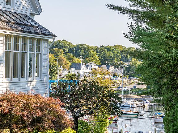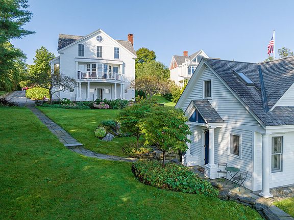 With stunning views of Camden Harbor and The Camden Hills, this 4-bedroom village home with a separate guest house is located directly across the street from the Camden Yacht Club and has frontage on both Chestnut and Bay View Streets. The home features an expansive great room with a wood-burning fireplace, built-in cabinetry, a wall of windows, and a large deck with sweeping views. A comfortable dining room, an eat-in kitchen, and a sitting area with a wood-burning fireplace, a pantry, a family room, and a full bath complete the first floor. The second floor has two bedroom suites, two additional bedrooms with a shared bath, an office, and a laundry room. The lower level of the house has a heated two-car garage, finished workshop, half bath, and great storage. Just a few steps away sits a charming separate 775-square-foot guest cottage with an open living/kitchen area, two bedrooms, and a full bath, all fully furnished. Extensive gardens surround the property with established flowering shrubs, stone walls, terraces, and walkways. The house also has an elevator and generator—an extraordinary home with incredible views and perfect proximity to enjoy all Camden has to offer.