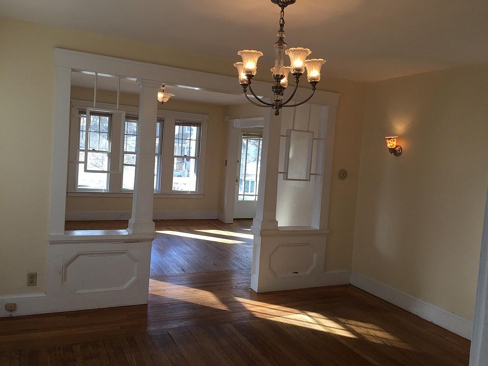 This is the first floor of a charming quiet sunny house. Location near Choate School, Wallingford Library, restaurants near center of town, close to Wallingford Train Station. All these are within walking and biking from house. Large yard, w/d hook ups in basement. Large front porch. Credit check, references, minimum 1 year lease. No smoking, serious candidates.