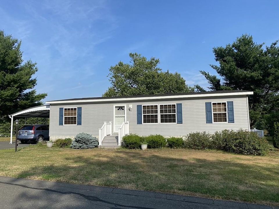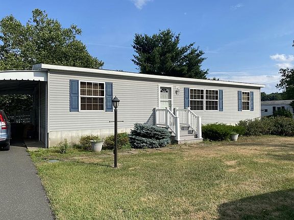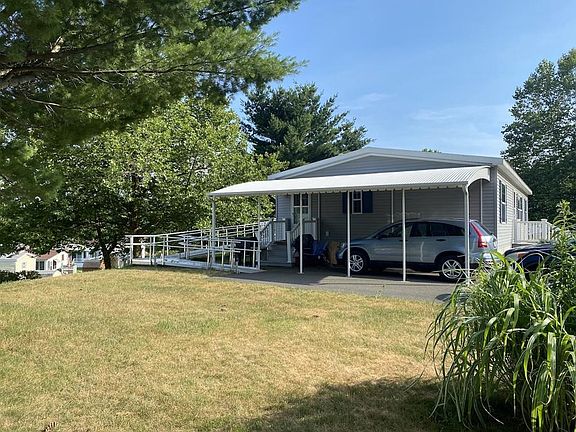 Another Gem in the crown of affordable retirement homes in Western MA. Don't miss your chance to own this 9 year young home in the sought after community of Brush Hill in West Springfield! This over sized modular/mobile home features a wide open floor plan, 3 bedrooms and 2 full baths! This home is nicely situated in the park where you can enjoy the sunrise and the expansive view with your coffee on the back deck. Or walk out the front door and take your welcomed four legged friend for a stroll in the community dog park. This home has seen some updates including new step in showers in both bathrooms, vinyl plank flooring in the living room and the addition of the oversized carport! Appliances will remain and the seller will also leave the wall mounted TV in the living room and the custom handicap ramp. Brush Hill is a retirement community for persons age 55 or older and the buyer is responsible for obtaining park approval. Lot fee is 475/mo and includes water, trash, sewer.