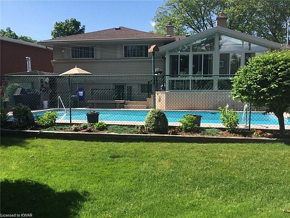 Offers welcome anytime! Of all the places to call home, you'll absolutely love this 4 bedroom 1.5 bath side-split in the quiet, mature neighbourhood of Stanley park. With irresistible curb appeal, a stunning backyard and exquisite in-house features, your family can work, play and relax close to Stanley Park Mall, Stanley Park Conservation Area, the Expressway, schools, the Kitchener Auditorium and so much more! You'll delight in hosting family and friends in your spacious kitchen with plenty of oak cabinets, gleaming hardwood floors (throughout the main level), a gas stove, and light-filled adjacent sunroom while looking out through a bay of windows onto a fantastic backyard oasis. A heated in-ground ceramic-tile pool beckons you to swim or sun-bath on a warm summer day while you plan for juicy steaks or shish-kabobs on the gas-linked bbq. And when it cools down you can retreat inside to appreciate the warmth of a double fireplace (a must see) and the sound of music filling your home from built-in speakers and a complete sound system throughout. If "all-play-and-no-work" sounds like like too much fun, there's a workshop with hydro on the property, a section of lawn for exercise and some beautiful landscaping for the gardener to enjoy, keeping the grass green with the help of a full sprinkler system (installed in 2005). You'll also have peace of mind knowing that your home has been lovingly maintained by the same owners for 40 years with consistent improvements including a concrete driveway, updated electrical in 2011, new stucco and siding installed in 2014, updated windows and doors, new water heater and water softener in 2018 and a brand new York furnace installed in 2020. I invite you to view this amazing AAA+ property, a rare opportunity I'd love to share with you!