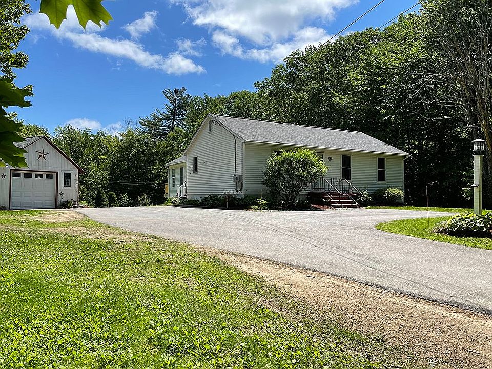 Now scheduling viewings and accepting offers as of 6/5/22. Unassuming from the road....exceptional inside!!! T-Shaped Ranch has wonderful flow for a family or entertaining. Large dining/kitchen/great rooms all open up to each other. Great room has vaulted ceilings, skylights, wood stove and sliders that open to a huge 16x24 deck (with new decking & rails in 2022) overlooking this gorgeous lot with a small pond, mature fruit trees, and perennial gardens. This property abuts conservation land, and boasts various wildlife and trails all around! The interior has handcrafted details through out! Master BR with walk in closet, private bath, and a custom corner jacuzzi tub. Two additional BR's on main level and then step down to the lower level to a one of a kind Man Town, with wood beams and a custom crafted bar, pool table, and air hockey table. Two more rooms open up to large gym (or what ever you wish it to be) and guest bedroom with one of a kind "log cabin princess bed” and two closets. Plus, a large laundry room. There’s also plenty of storage with a walk out to under the deck area for seasonal storage. Over sized garage with storage and a new 18x24 gambrel shed too. This house also has a new roof in 2018, which comes with a transferable unconditional lifetime warranty, so you will never have to worry about roof issues. Great school system, quiet neighborhood, and only a 30 minute drive to both Concord and Manchester. A quick 2 minute drive to Horace Lake for a swim, or 15 minute ride to Pats Peak Mountain for skiing or snowboarding. The location is perfect. This is a Must See!! The drive by does not reveal all this home has to offer!! To receive update notifications, make an offer, or to schedule a viewing, please send your contact info to: 72CRANEYHILLRD@gmail.com