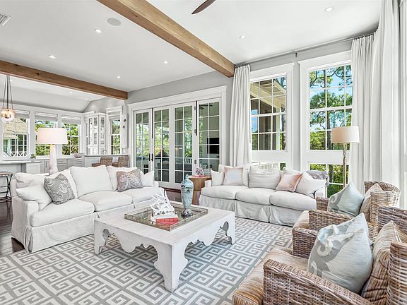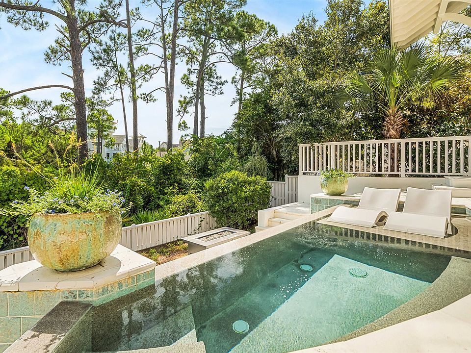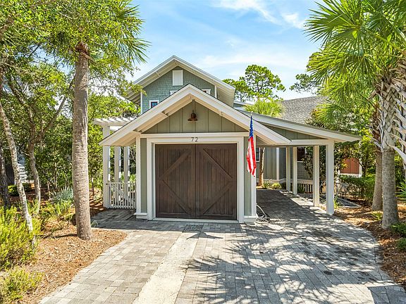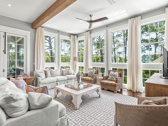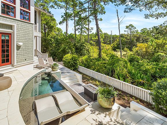 Welcome to a coastal sanctuary of unparalleled beauty and comfort, where the idyllic WaterSound Beach lifestyle seamlessly merges with timeless elegance. This property encompasses nearly 3,000 square feet of thoughtfully designed interior and exterior spaces including an outdoor retreat with a plunge pool and sun shelf, all nestled on a quiet cul-de-sac just a scenic stroll alongside Camp Creek Lake to the beach. The interiors reveal a classic style with hardwood floors, a peaceful color palette, custom millwork, ample natural light, custom tile work, and much more. Featuring a reverse design plan, the first level includes a dreamy primary suite complete with a sitting area, vaulted shiplap ceiling, spacious luxury his and her ensuites, and private access to the outdoor entertaining