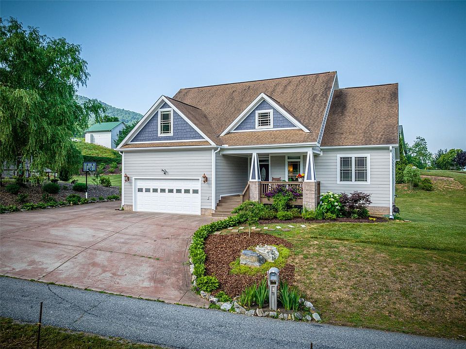 Beautiful home with mountain view, easy access with one level living, this is a dream came true! The two story tall cathedral ceiling with open floor plan and open railed loft, 3 spacious bedrooms on main with multiple bonus rooms upstairs and unfinished basement for future expansion, also large front porch and back porch with open deck leading to flat back yard, the potential here is endless. Already equipped with high end finishes inside and out, lots of updates were done since 2018 including spectrum internet, others listed in the attached update sheet. Surrounded by well maintained neighborhood and rolling pastures, this home is also only 20 minutes or so to Asheville and Waynesville.
