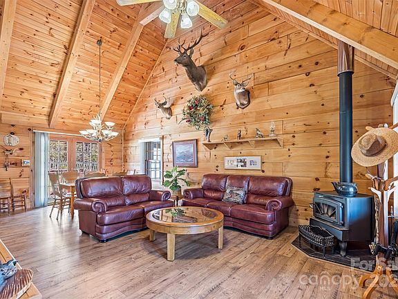 **Back on the Market due to NO fault of the seller! One buyer's loss is your gain!** Country mountain living realized at this custom log home on its own quiet 11.07 acres in Alexander - only 10 minutes to Asheville, and to grocers and amenities in 5 minutes. This peaceful farm is tucked in at the end of a private road. Greet the day from the front porch swing while honing in your birdsong identification. A crackling fire in the woodburning stove invites warmth in the open living area with cathedral ceilings when the seasons get colder. Explore the property's own meandering creeks through the trails from the meadows to the woods and say hello to the family of deer and turkey along the way. Complete with an attached two car garage, unfinished flex space, workshop, tool shed and open air pavilion, this farm is a nature lover and farmer’s paradise! The 11 acres offer plenty of room to divide the land with loved ones or keep it and let them visit.