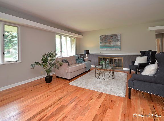 BEAUTIFULLY UPDATED MID-CENTURY RANCH! So much character and history in this quality built 2500+ SF home in the heart of Crystal Lake. Spacious & OPEN FLOOR PLAN. NEW SOLID HARDWOOD flooring. 3 LARGE bedrooms. 2 1/2 bathrooms. 2 gas FIREPLACES. Original 1950s GENEVA kitchen cabinets that will make any MCM-lover swoon. Brand new stainless steel appliances. New Washer/Dryer. EAT-IN area with built-ins. Large laundry room/mud room area. So much STORAGE SPACE here. Partially finished basement includes a full bathroom. SLATE walkway and porch in the front and brick PAVER patio in back. The yard is professionally landscaped with gorgeous perennials. Easy to maintain. And...IT'S ON THE PARADE ROUTE! (Agent-Owned)