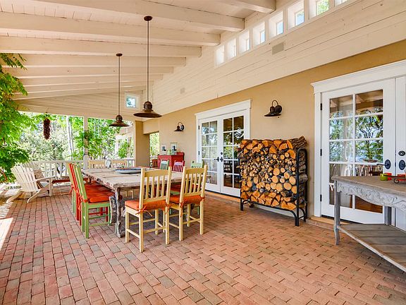 This gracious 6700-square-foot home, originally built in 1977 by the first curator of photography for the Museum of Modern Art, has drawn prominent artists, writers, musicians and photographers--including Ansel Adams, who was a regular guest at this beautiful 5.3-acre retreat. Combining the best of a Northern NM ranch style with clean contemporary lines, the main house was recently expanded with artful attention to detail. Clerestory windows, French doors, wrap-around porches, plaster walls, soapstone countertops, fine custom carpentry, and skylights galore all contribute to the unique aesthetic of this light-suffused home. Set under towering cottonwoods in rolling foothills threaded with hiking trails, this masonry, clad in stucco and rusted metal exteriors, elegantly exemplifies a modern ranch style. At night, enjoy a carpet of twinkling city lights. Inside, the 4 bedroom, 3 bath main home has a large open kitchen equipped with Viking and Bosch appliances, twin refrigerators and dishwashers, farmhouse sink, and generous walk-in pantry. The detached 700-sq ft casita is perfect for visiting family or a tranquil artist's retreat. The home offers solar in-floor radiant heat, evaporative cooling and a buried 5000-gallon rainwater collection vessel to irrigate gardens and orchard. When it's time to get creative, there are two inspiring office options. Or...fade into the landscape on the back portal and soak in the sunset as the next photograph or novel comes to life.