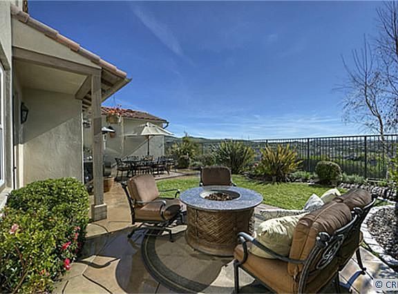 This exquisite Spanish residence occupies a bluff top parcel with arresting views of the surrounding hills. Featuring 4 bdrms, 3.5 baths and ground level office, this flowing two-story floor plan welcomes residents and guests with a blend of privacy and elegance. Celebrating the spirit of la dolce vita , a gourmet kitchen flows to dining and living with ease extending a six-burner cooktop with double ovens, granite, stone, built-in refrig/freezer and butlers pantry. Upstairs, a romantic master suite showcases a luxurious spa-inspired ensuite bathroom tastefully embellished in marble and stone. Further refinements include exquisite and warmly appealing espresso hardwood floors, spacious light-infused interiors, beautifully upgraded secondary bathrooms, wainscoting, crown molding, two fireplaces, central vacuum system and lux window treatments. Serene yard features serpentine patio, lawn area and panoramic views. Charming porte cochere leads to motorcourt and three car garage.