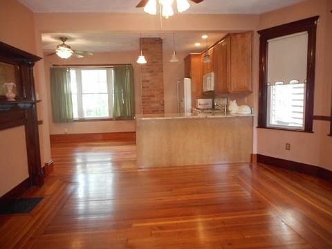 Spacious and Charming GUT RENOVATED 3 Bed/1 Bath steps from Ronan Park & Fields Corner T Stop! House underwent major renovations a few years ago and this apartment now features: Gorgeous open Eat in Kitchen with granite counters, Bosch appliances including dishwasher/disposal/gas stove and built-in microwave! Open floor plan between Kitchen/Living room with Breakfast bar! Living Room has bay windows and decorative fireplace! Gut renovated bathroom with dual shower head and updated fixtures! GIANT Master Bedroom with attached study or walk-in closet! Other two bedrooms are large with bay windows pouring in sunlight! Polished Hardwood floors throughout the entire house! Ceiling Fans in every room! Recessed lighting on dimmers! Huge Front Porch! Laundry in UNIT! Pets Okay! House is perched on Meeting House Hill literally feet from Ronan Park. 7 minutes walk to Fields Corner T stop! Gorgeous Views of Dorchester Bay! Easy commute to Park St & Downtown Crossing! Kitchen Features: Open Kitchen Dishwasher Disposal Built in Microwave Granite Counter Living Room Features: Hardwood Floor Decorative Fireplace Bay Windows Laundry in Unit - All Pets Welcome