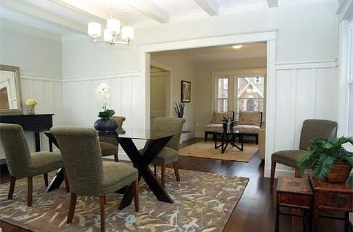 Impeccable attention to design and detail in this striking Philadelphia Style home. The living room and dining room have a comfortable welcoming flow which is perfect for entertaining. The dining room has original wood paneling and beam ceiling. The sparkling Chef's kitchen includes white quartz counters and energy star Jenn-air appliances along with custom cabinetry. There are three generous sized bedrooms and two baths. Upper level has master bedroom with en suite bath. Lustrous oak and fir floors add warmth and charm throughout. New electrical, recessed lighting, central air and heat, new roof, insulated replacement windows, and in unit laundry. Private yard, two deeded parking spaces, a beautiful private yard and spacious deeded storage areas complement this lovely home.