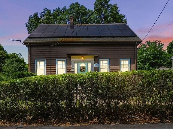 Modern amenities and charm in this 2 bed, 1.5 bath home in the heart of Stoneham! This large, corner lot features a generously sized deck with an electric awning - ideal for outdoor dining, a patio area for lounging, and an oversized detached garage. This home is environmentally friendly with solar panels, an EV charger, and a Tesla Powerwall (home power backup!); all installed 2023. Inside, the main level welcomes you with a spacious living room & dining room (or den/office) w/ hardwood floors and flooded with natural light through large windows. The expansive eat-in-kitchen is equipped with ample cabinetry, stand-up freezer, and direct access to the deck. Off the kitchen is the pantry w/ half bath, washer/dryer, & xtra frig. Upstairs, you'll find two bedrooms and a full bathroom. The primary bedroom offers versatility w/ potential to be converted back into two separate bedrooms. Roof 2012 - metal chimney liner replaced 2016 due to cosmetic rust effect. See attached list of updates.