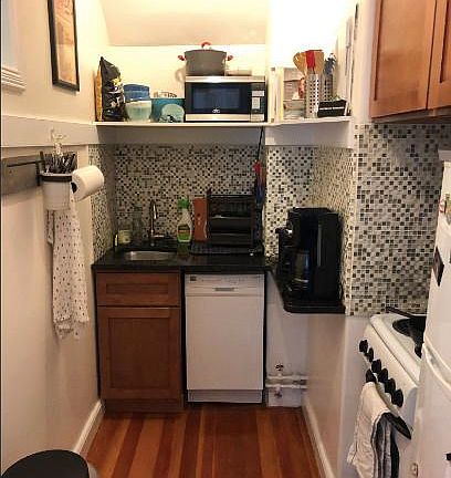 Available May 1st, imagine yourself in this fully appointed, sunny, Victorian-era studio apartment located just off of Beacon Street between Washington Square and Cleveland Circle. This apartment boasts plenty of character, including original hard wood floors, claw foot bathtub, a decorative fireplace, brand new stainless steel appliances and in-unit washer and dryer. Heat and hot water are both included in the rent. Apartment is offered unfurnished for $2050 per month or furnished (full bed, table and 2 chairs, and new air conditioner) for $2150 per month. One pet (cat or dog) is allowed.
