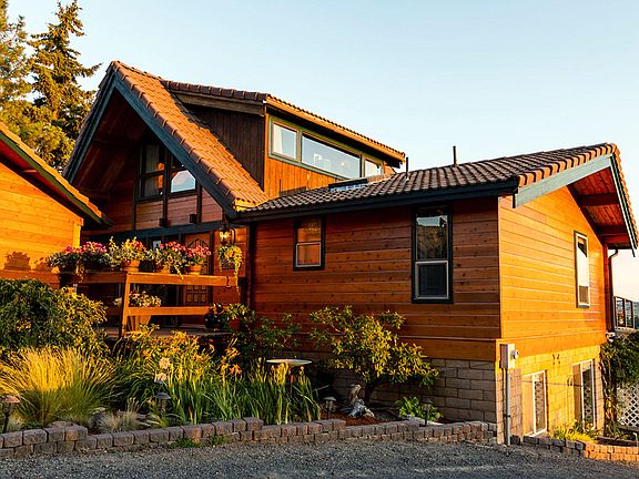 Solid and well built, this Justice/Lindal Cedar Home with tile roof is a classic beauty of workmanship and design that has been updated throughout. New high end energy efficient Mitsubishi heating and cooling heat pump system, new carpet, and laminate flooring, new windows, completely remodeled gorgeous cook's dream kitchen, with pantry, granite counters, 11' eating bar, high end appliances, with double wall ovens, 5 burner gas cook top and grilling convection microwave. The vaulted living room with huge windows offers passive solar heat, as does the sun room downstairs. 3 large bedrooms, 2 with walk in closets, 3 fully remodeled bathrooms, master bath has walk in shower and jetted tub. The downstairs family area is totally private, with Bettencourt built-in entertainment center and a cozy gas fireplace, wired for surround sound. Loft/office/craft room with built-in gun safe. 26x26 oversized garage, RV parking with electric hook-up, fruit trees and low maintenance yard.