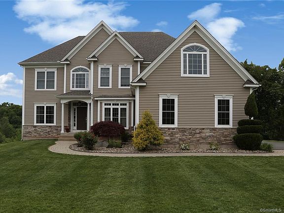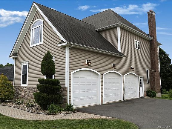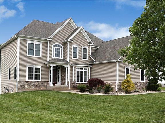 Located in the corner of South Windsor is this Mannarino custom built home in the Dzen Tree Farm neighborhood. You will be greeted by a grand entrance with a vault ceiling and custom Harvey windows that flood the home with natural light. The main floor flows with beautiful hardwood throughout. A desirable open floor plan, that is great for entertaining connects the living room and dining room. The spacious kitchen features stainless steel Whirlpool appliances, custom cabinets, granite counter tops and a beverage bar with wine fridge. The family rooms focal point is a floor to ceiling stone fireplace. It has a remote-control gas insert but can easily be converted to a conventional wood burning fireplace due to its real stone chimney. The main floor also has an office, ½ guest bath and a tiled mudroom entrance from the three-car garage with oversized doors. Head upstairs to find five bedrooms and many other surprises. The Master bedroom has an oversized walk-in closet and ensuite with both, a custom tiled shower and a full size jacuzzi tub. Through the closet is a second private office with a grand floor to ceiling window. Three of the other bedrooms are full sized with the fifth being a bonus double sized mini master with a walk-in closet. It would also double as a game room or upstairs den. The upstairs is capped with another full bathroom and laundry room.