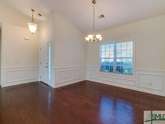 Home located in the desirable and conveniently located gated community "The Gates at Savannah Quarters" Immaculately kept and freshly painted one owner home. Foyer entry, formal dining room, large open family room, gourmet kitchen with granite counters, solid wood cabinets, stainless appliances including refrigerator, bar top seating and breakfast nook. Beautiful engineered hardwood floors in main living space. Large master bedroom with on-suite bath that features a double vanity sink, soaking tub, separate shower and walk-in closet. Two additional bedrooms with brand new carpet. Low maintenance exterior with energy efficient Hardi Plank siding and Side entry 2 car garage. Covered front and back patios. NO required flood insurance. This home is a must see!