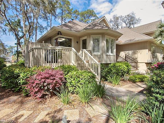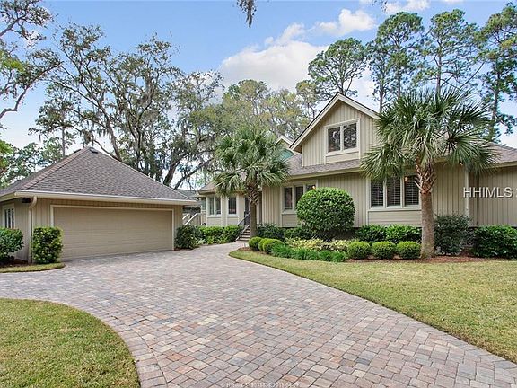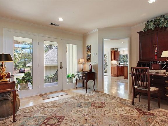 Magnificent, unobstructed views of the fairway, green & all the way to the Sea Pines CC Clubhouse! 4 bedrooms, 4 1/2 baths, 2 offices (one with fireplace). Views from the many windowed Carolina room, grand porch, fabulous master suite with double vanities, separate shower, walk-in closet and - most of all - a private, generous master suite sitting room. Gleaming hardwood floors, many custom built-in cabinets and shelving. Large light, bright kitchen with gas cook top, lovely dining room, deck off porch, a climate controlled storage room (tax record calls 5th bedroom) which could be great exercise room, playroom or painting/hobby room.